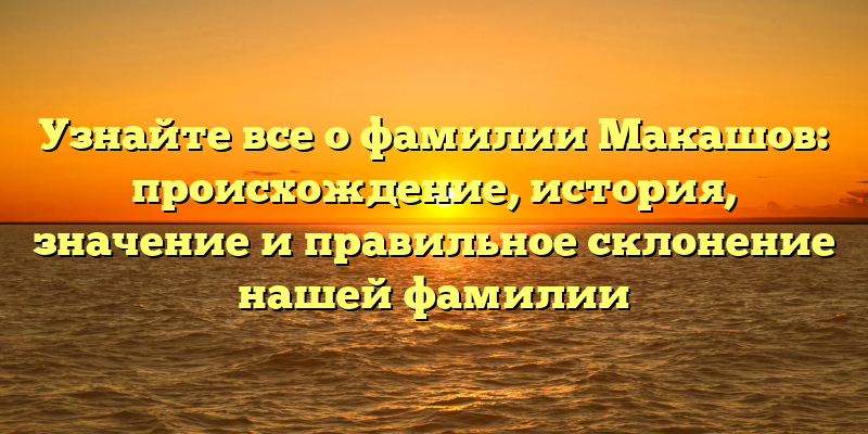 - Фамилия Макашов: исследуем происхождение, историю, значение и правила склонения для полного понимания