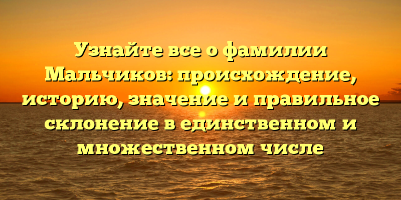Фамилия Мальчиков: исследуем происхождение, историю и правильное склонение в единственном и множественном числе
