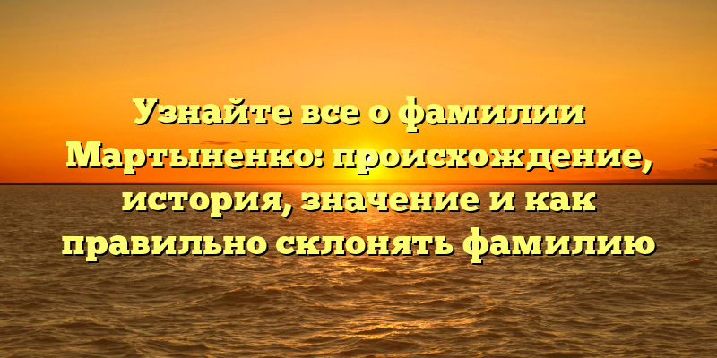 История и значение фамилии Мартыненко: узнайте происхождение и правильный способ склонения.