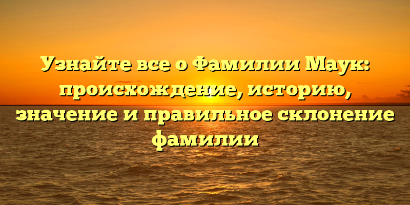 - Раскрываем тайны Фамилии Маук: происхождение, история, значение и правила склонения