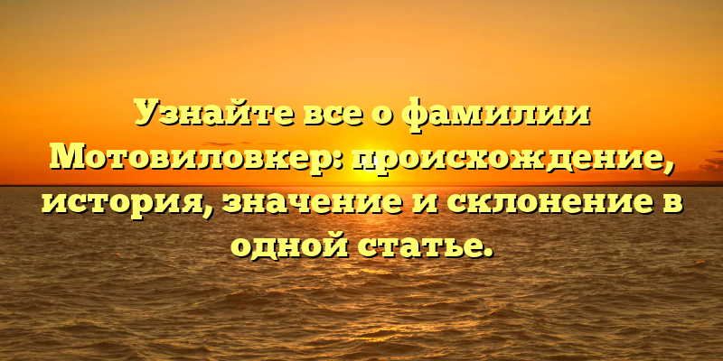 Мотовиловкер – это фамилия, которая имеет интересную историю происхождения. Если вы хотите узнать больше об этом, то вы попали по адресу. В этой статье вы найдете все необходимые сведения, чтобы разобраться в этом вопросе.