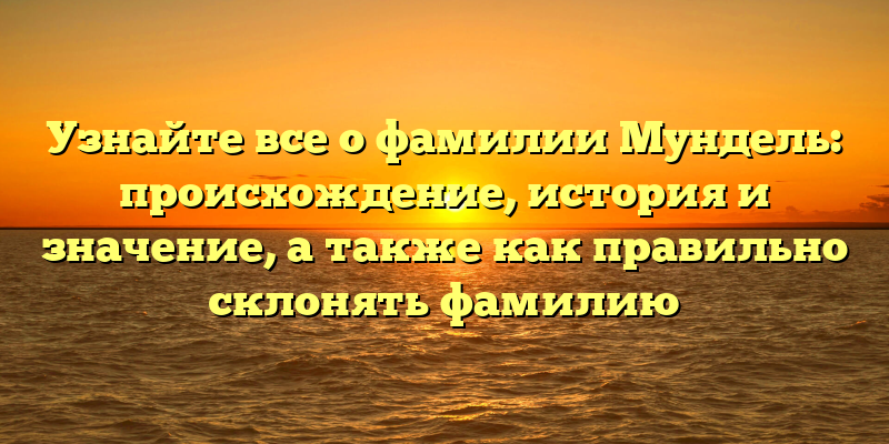 - История и происхождение фамилии Мундель: узнайте значение и правильное склонение