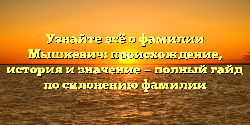 Исследуйте происхождение и историю фамилии Мышкевич: узнайте значение и правила склонения — полное руководство.