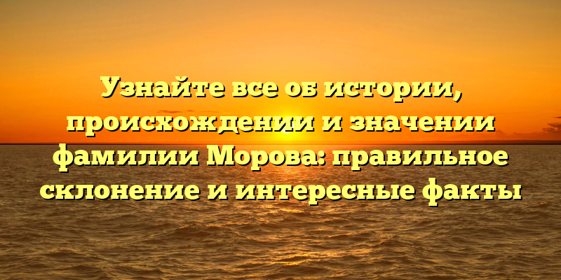 - Фамилия Морова: история, происхождение, значимость и интересные факты – полный гид