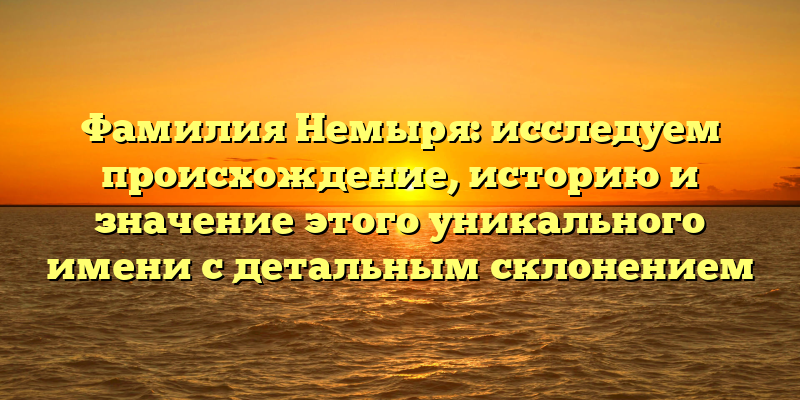 - Фамилия Немыря: происхождение, история и значение имени с подробным склонением в одной статье
