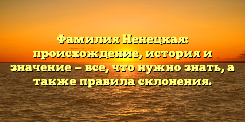 Полное руководство по фамилии Ненецкая: всё о происхождении и значении, а также грамотное склонение.