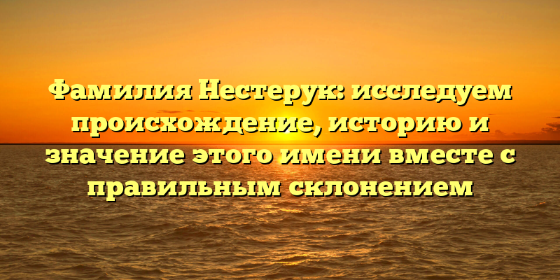 - Фамилия Нестерук: происхождение, история и значение имени вместе с правильным склонением – все, что вы хотели знать
