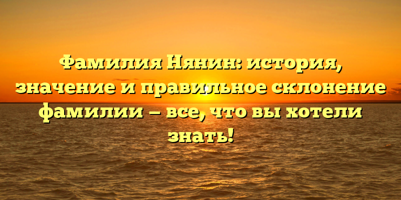 Узнайте историю, значение и правильное склонение фамилии Нянин в нашей полезной статье!