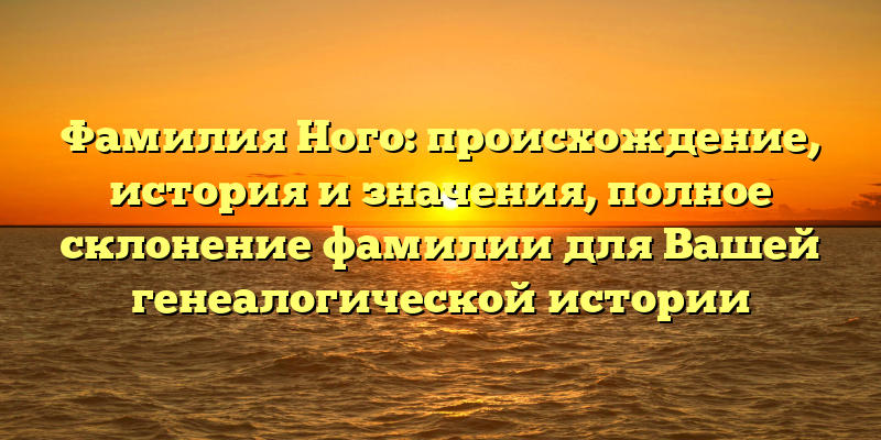В этой статье мы рассмотрим все возможные источники происхождения фамилии Ного, разберем ее многочисленные значения и предоставим полное склонение для тех, кто занимается генеалогическим исследованием своих корней.