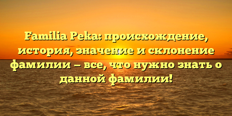 - Familia Peka: полное руководство по происхождению, истории и склонению фамилии — узнайте все, что вам нужно знать!