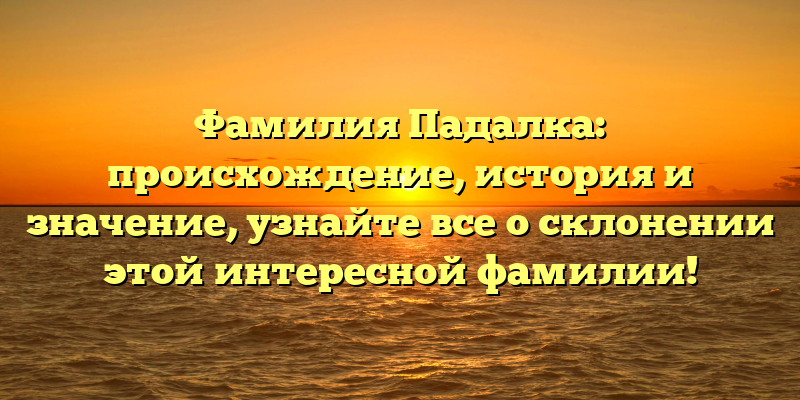 - От истории до склонения: Фамилия Падалка – загадочное происхождение и смысл