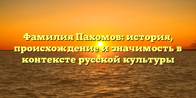 - Фамилия Пахомов: история и происхождение как часть русской культурной наследственности