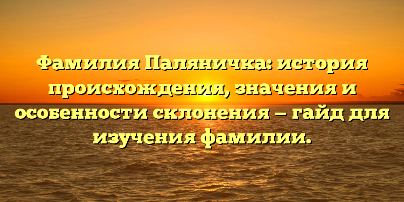 В этой статье вы найдете полезный гайд для изучения фамилии Паляничка, включая особенности ее склонения, исторические корни и значения.