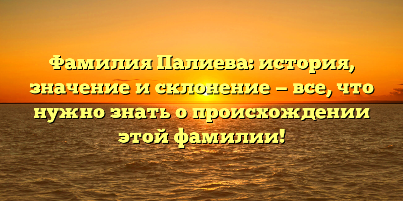 - Фамилия Палиева: происхождение, значение и склонение — полное руководство по истории этого редкого фамилии!