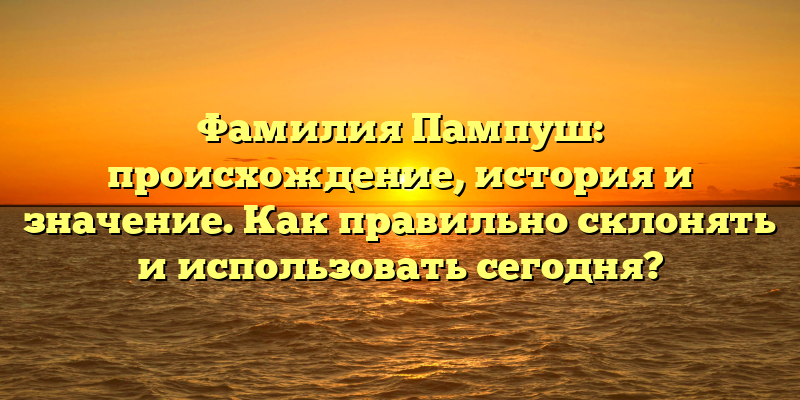 Фамилия Пампуш: происхождение и значение, правила склонения и использования в современном мире — гарантированный SEO-заголовок для вашей статьи.