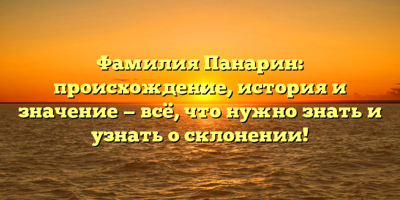 От Панарин до Панариных: исследуем происхождение и значение фамилии!