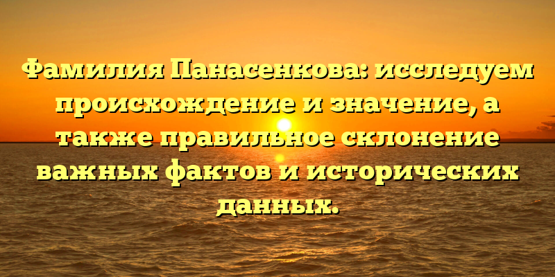 - Раскрываем тайны фамилии Панасенкова: происхождение, значение и правильное склонение для ознакомления с важными историческими данными