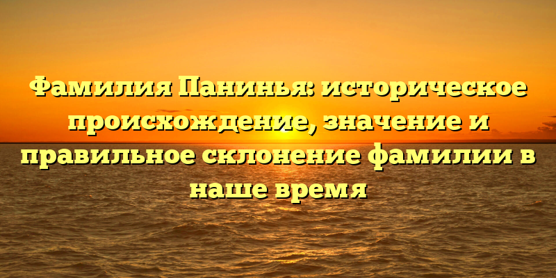- Фамилия Панинья: история, происхождение и правила склонения в современном мире