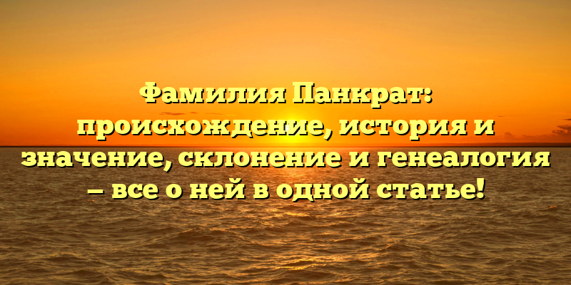 Раскройте тайны фамилии Панкрат: история, значение, склонение и генеалогия в одной статье!
