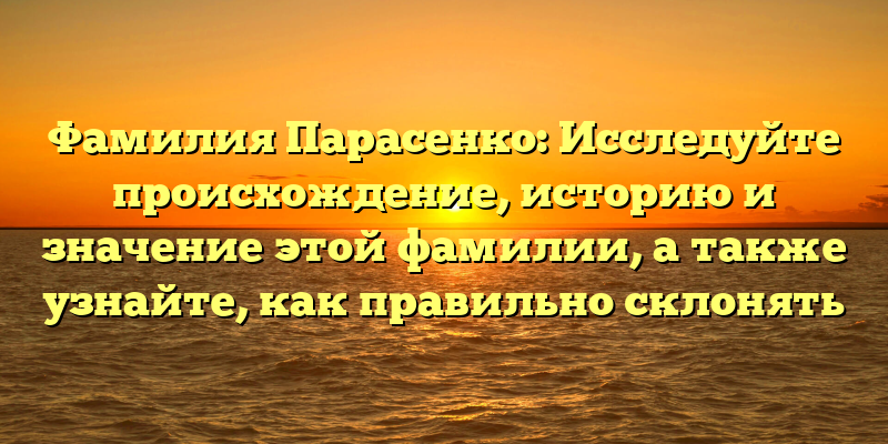 Когда мы встречаемся с чьим-то именем, мы часто начинаем обращать внимание на его происхождение, наряду с его значениям и контекстом, в котором возникло. Эта статья посвящена фамилии Парасенко и стремится тщательно рассмотреть происхождение этой фамилии, а также её исторические и культурные значения. Более того, в этой статье будет сделан акцент на правильном склонении фамилии Парасенко и на том, как это сделать.