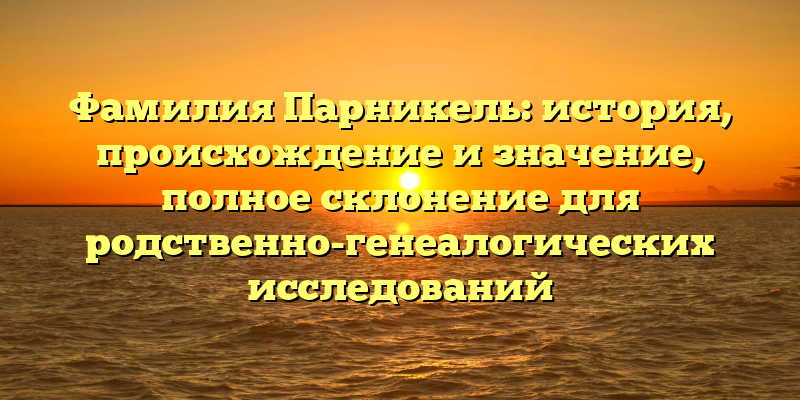 - Фамилия Парникель: происхождение и значение, полное склонение для родственно-генеалогических исследований