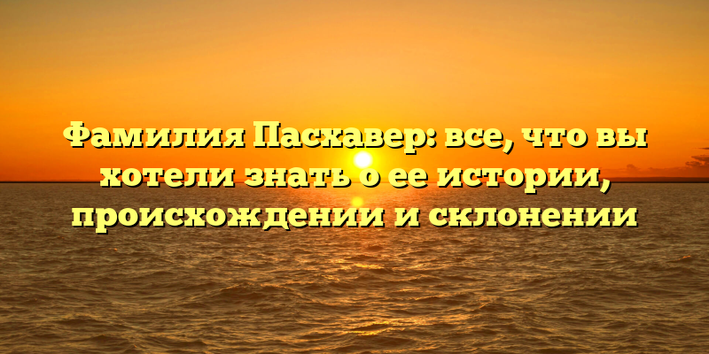 - Погрузитесь в историю фамилии Пасхавер: происхождение, склонение и уникальные факты