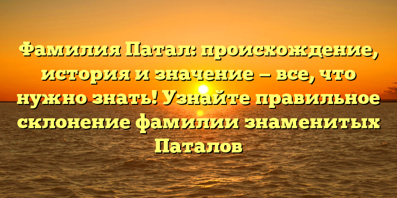 - История и значение фамилии Патал: откройте для себя происхождение и особенности склонения знаменитых Паталов!