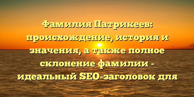Фамилия Патрикеев является прекрасным примером ключевого словосочетания, способного помочь поисковым системам понять, что данная статья содержит всю необходимую информацию о фамилии.
