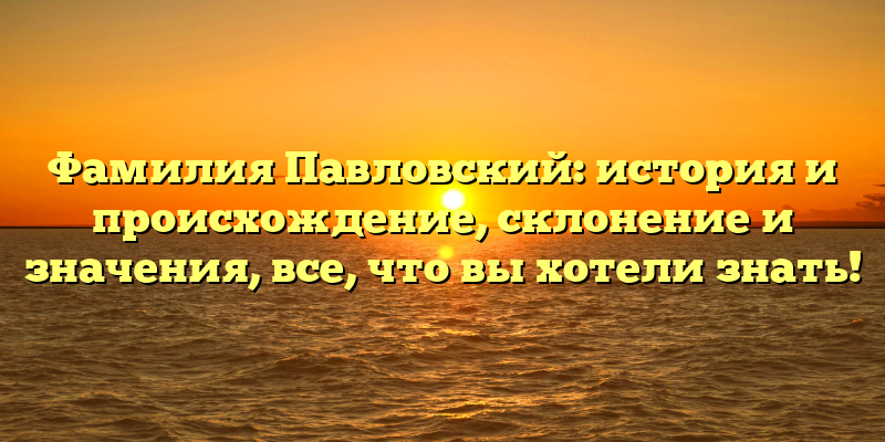 Павловский — русская фамилия, которая пользуется большой популярностью в России и за ее пределами. Она довольно распространена среди населения и имеет интересную историю и происхождение, которые мы расскажем в этой статье. Кроме того, мы расскажем об особенностях склонения фамилии и ее значении.