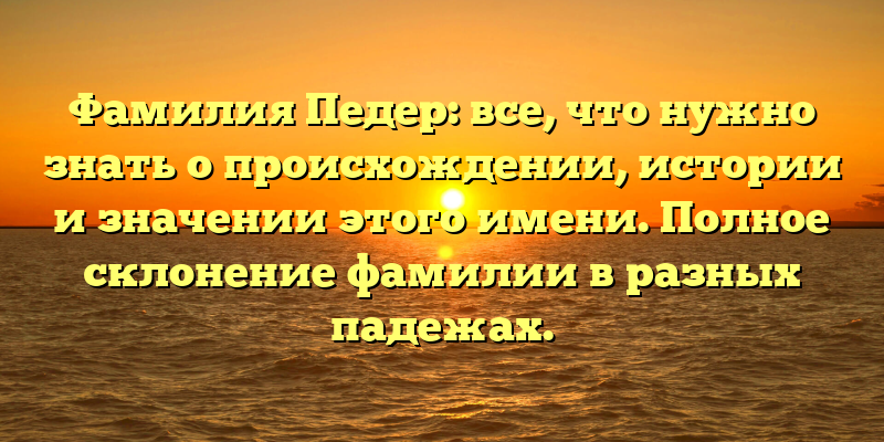 - Фамилия Педер: происхождение, история и значение имени. Полное склонение в разных падежах для использования в наследственных документах и официальных документах