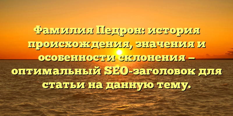 - Фамилия Педрон: история и значения, как правильно склонять и особенности использования — идеальный SEO-заголовок для статьи по этой теме.