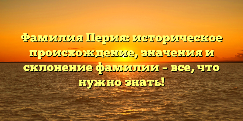 Перия — одна из самых известных фамилий в мире, которая имеет исторические корни и глубокий смысл. Рассмотреть историю этой фамилии очень интересно и увлекательно. Эта статья описывает происхождение, значение и склонение фамилии Перия.