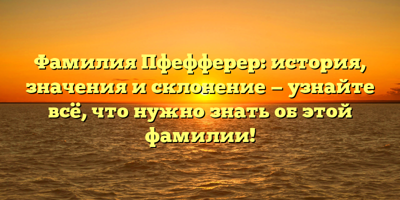 - Фамилия Пфефферер: происхождение, значения и склонение – полное руководство для исследования этой уникальной фамилии