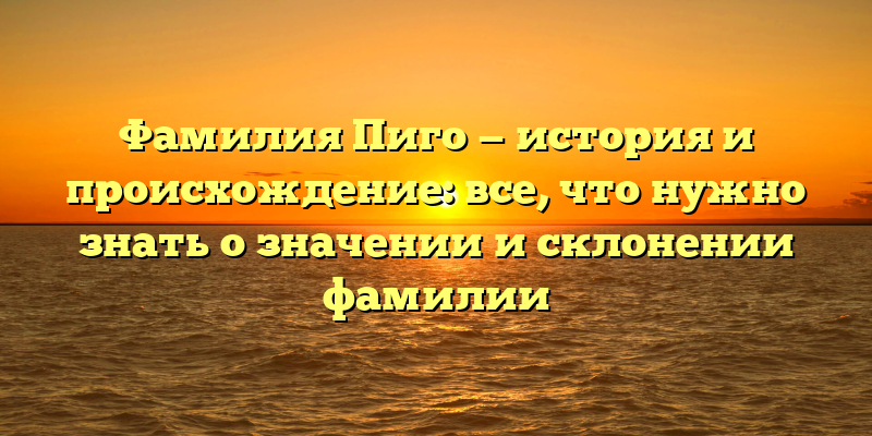 Если вы заинтересованы в изучении происхождения своей фамилии или ищете информацию о фамилии Пиго, этот материал поможет вам узнать все, что нужно знать о значении и склонении этой фамилии.