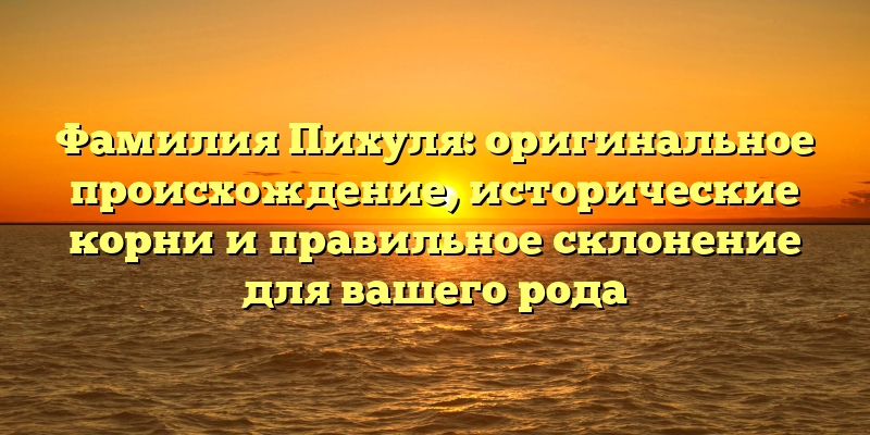 - Исследуем происхождение фамилии Пихуля: исторические корни и советы по правильному склонению для вашего рода