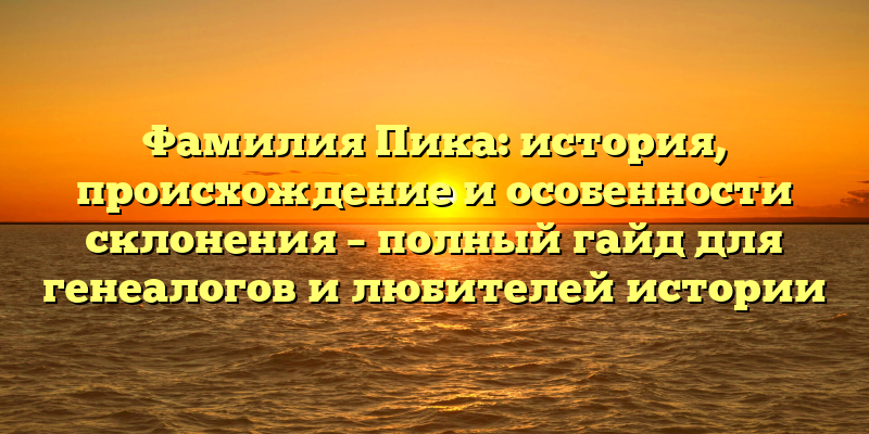 - “Фамилия Пика: полный гайд по происхождению, истории и склонению для генеалогов и исторических энтузиастов”