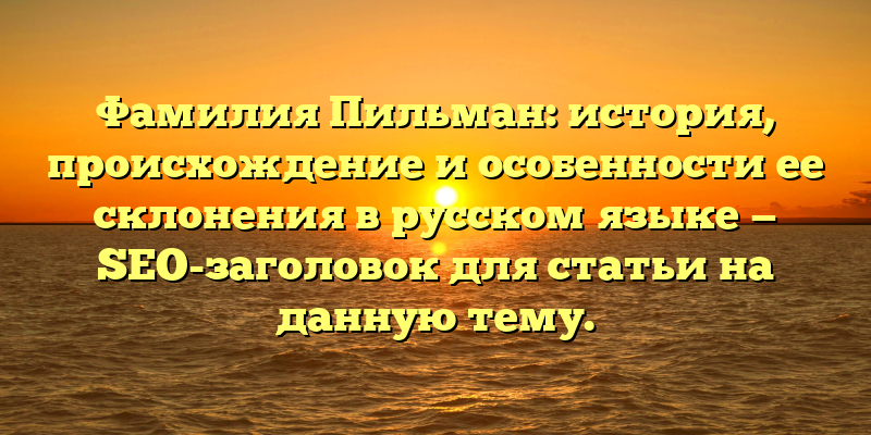Фамилия Пильман: происхождение и склонение в русском языке — узнайте все о культурном наследии семьи Пильман!
