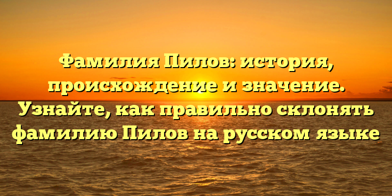 - Фамилия Пилов: происхождение, история и правильное склонение на русском языке