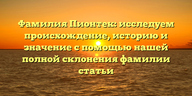 - Фамилия Пионтек: полное исследование происхождения и истории, чтобы раскрыть значение этой фамилии