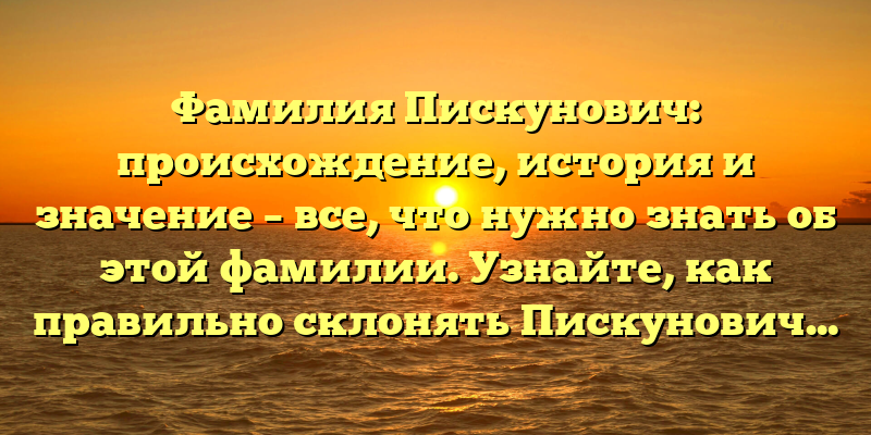 Каждая фамилия имеет свою историю и значение, и порой интересно узнать о них подробнее. В данной статье мы рассмотрим фамилию Пискунович, происхождение и историю этой фамилии, а также разберем правила ее склонения.