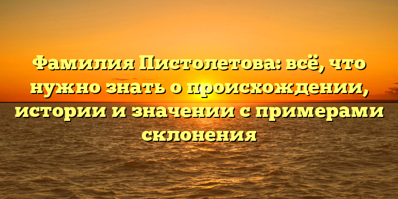 - Фамилия Пистолетова: происхождение, история и значение с правильным склонением — идеальный SEO-заголовок для данной статьи.