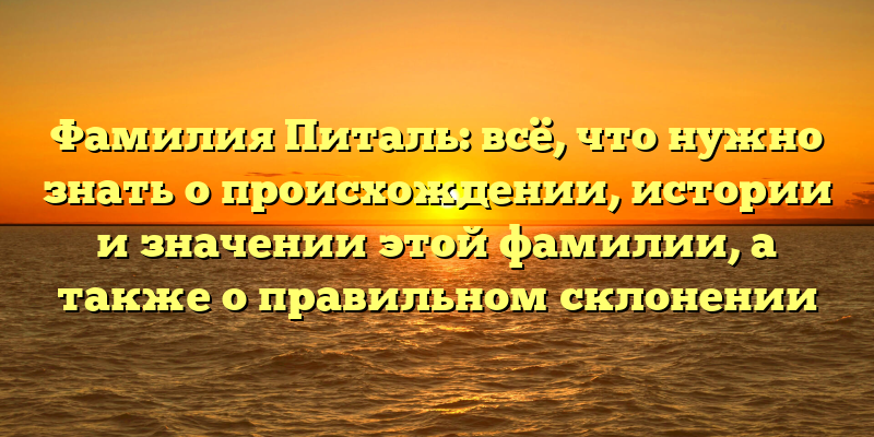 - Фамилия Питаль: происхождение, история и значение фамилии, идеальное склонение — полный гид
