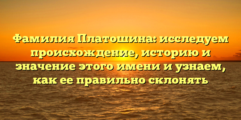 - Фамилия Платошина: происхождение, история и склонение — полный гид для всех желающих узнать больше.