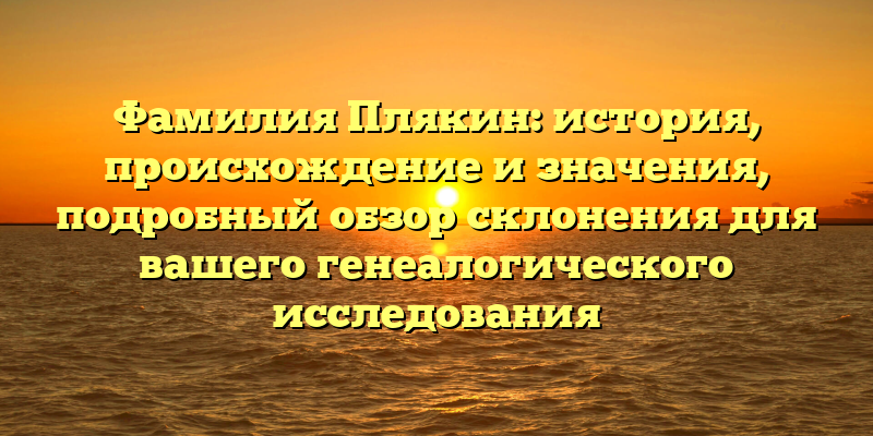 - Фамилия Плякин: происхождение и значения, ключевые моменты склонения для успешного генеалогического исследования