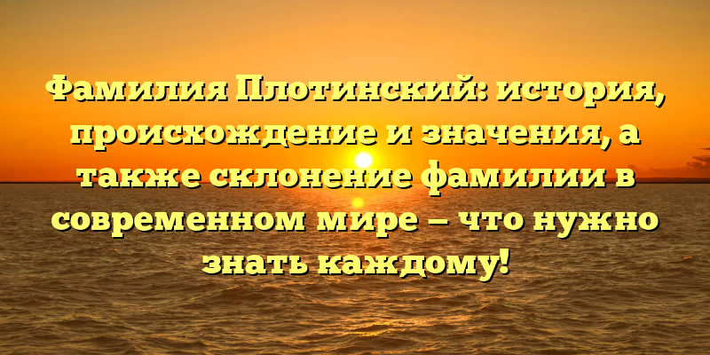 Познакомьтесь с историей, происхождением и значениями фамилии Плотинский, а также узнайте, как склонять ее в современном мире: полезная информация для всех!