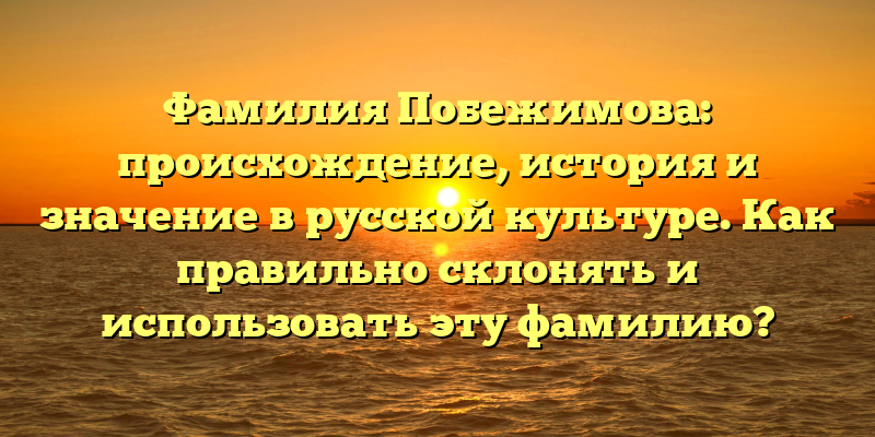 - Фамилия Побежимова: история происхождения и значение в русской культуре. Как правильно склонять и использовать эту фамилию – полезные советы.