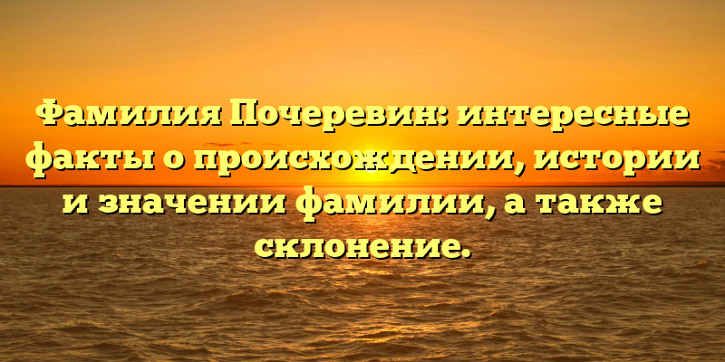 Фамилия Почеревин: история, происхождение и значимость фамилии, а также правильное склонение — оптимальный SEO-заголовок для этой статьи.