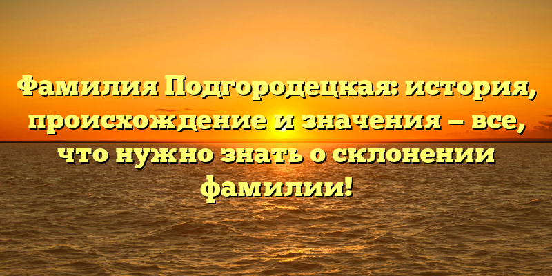 - Погружение в историю фамилии Подгородецкая: происхождение, значения и секреты правильного склонения!
