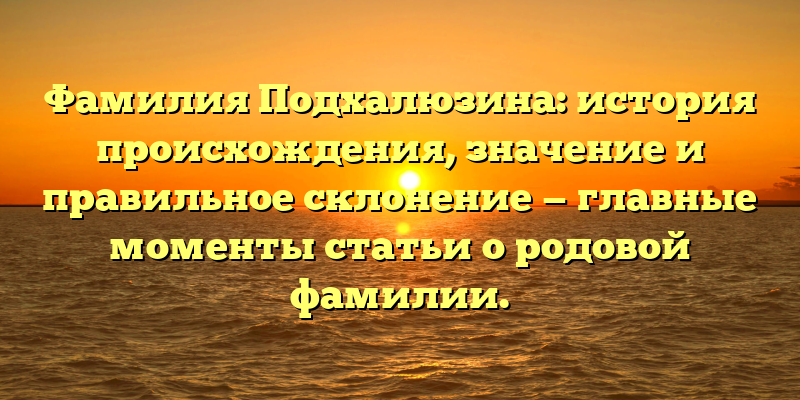 Если вы также интересуетесь историей фамилий и хотели бы узнать больше о происхождении фамилии Подхалюзина, то эта статья для вас!