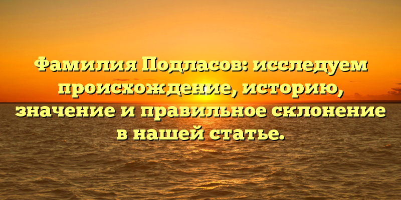Узнайте все о происхождении и истории фамилии Подласов, а также правильном склонении в нашей обзорной статье